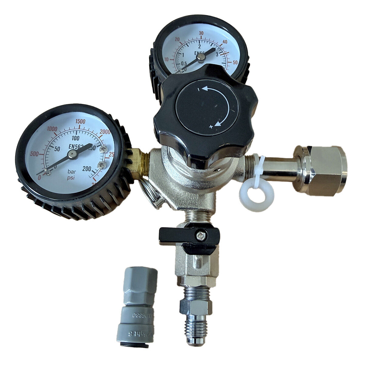 - manometer pracovný tlak 0-10bar, tlak vo fľaši 0-200bar